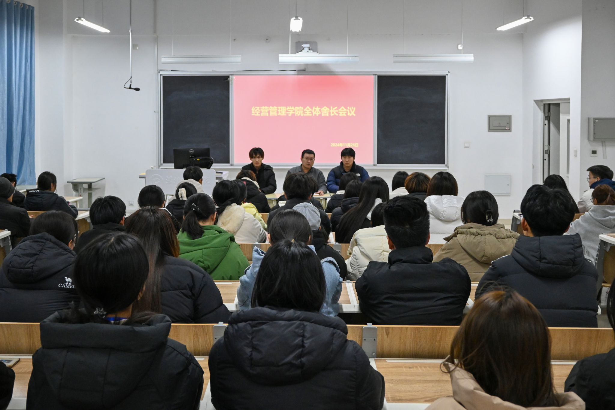 为进一步加强学生宿舍安全管理,创建更加安全有序、整洁舒适的学习生活环境,营造和谐温馨的宿舍文化氛围,11月26日下午,经营管理学院在智泽2号楼B214阶梯教室召开全体宿舍长会议,辅导员办公室教师代表、经营管理学院学生会主要干部和全体宿舍长参加了会议。会上,辅导员教师代表首先对过去一年中宿舍管理工作进行了总结回顾,肯定了宿舍长在宿舍常规管理方面的辛苦付出和宿舍文化建设等工作方面取得的成绩,强调了宿舍长在学生干部队伍中的重要地位。...更多 -
