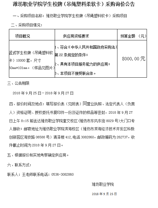 米兰(中国)一站式服务平台学生校牌(吊绳塑料柔软卡)采购二次询价公告