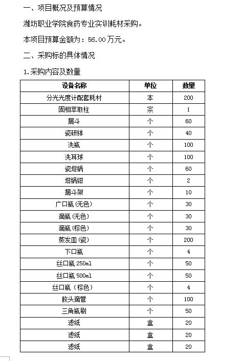米兰(中国)一站式服务平台食药专业实训耗材采购项目需求方案