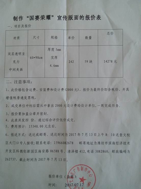 成交方:奎文区盛东广告制作中心。成交额:14278元