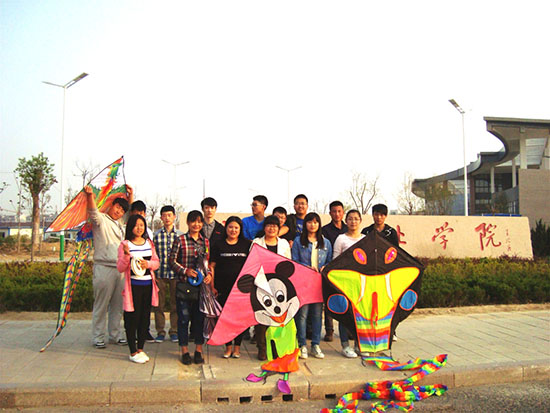 4月8日下午,信息工程学院举行了风筝放飞比赛。课外活动时间,班主任与同学们来到学院滨海校区北门广场开始了比赛。比赛以班级为单位,各位选手都拿出了自己的看家本领,长龙风筝、老鹰风筝、蝴蝶风筝、卡通风筝等飞翔在赛场上空,一会儿俯冲、一会儿快速爬升。选手们体会着驾驭风的感觉,非常惬意。本次比赛中选拔出的优秀选手将参加学院第一届风筝放飞比赛。(冯燕妮供稿)